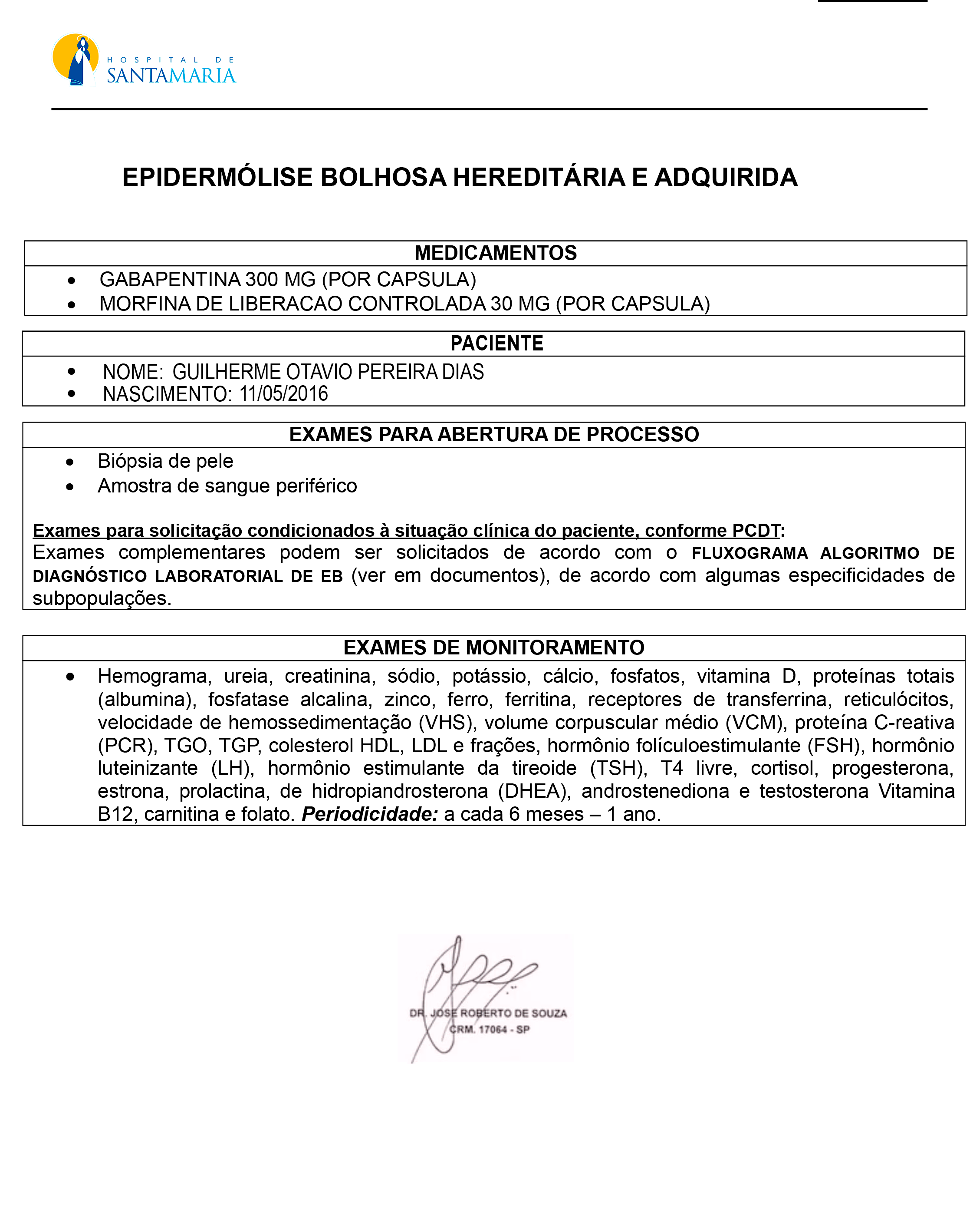 Preescrição médica do Guilherme: